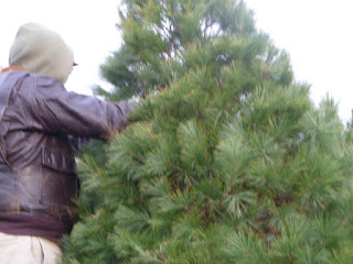 Last weekend, we made the 2nd annual trip to Dull's Tree Farm to pick out and cut down our Christmas tree. We started out with a picture by the presents, which we also did last year - my what a difference a year makes!