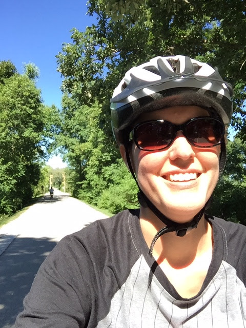 I'll finish this post with a relatively rare picture of me - I created a list of things to do this week and one of them was a long bike ride on a local rail trail - my husband and I went yesterday on my birthday and I got in a nice ride to start my 46th year. I also started a new stitching project, which was just as much fun!